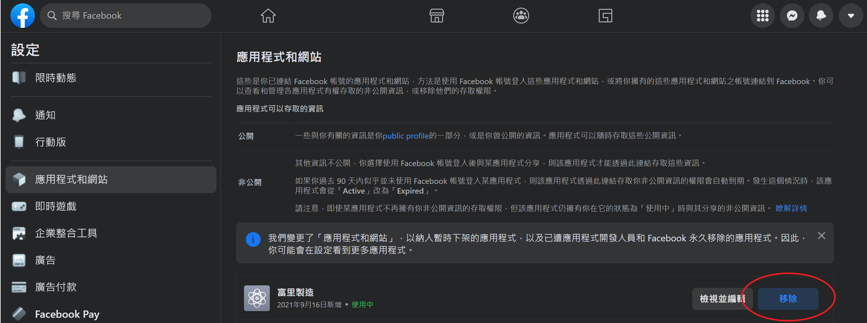 Once removed, 富里製造 will no longer be able to access the non-public information you previously shared with it, but may still have what it received when the connection was active.